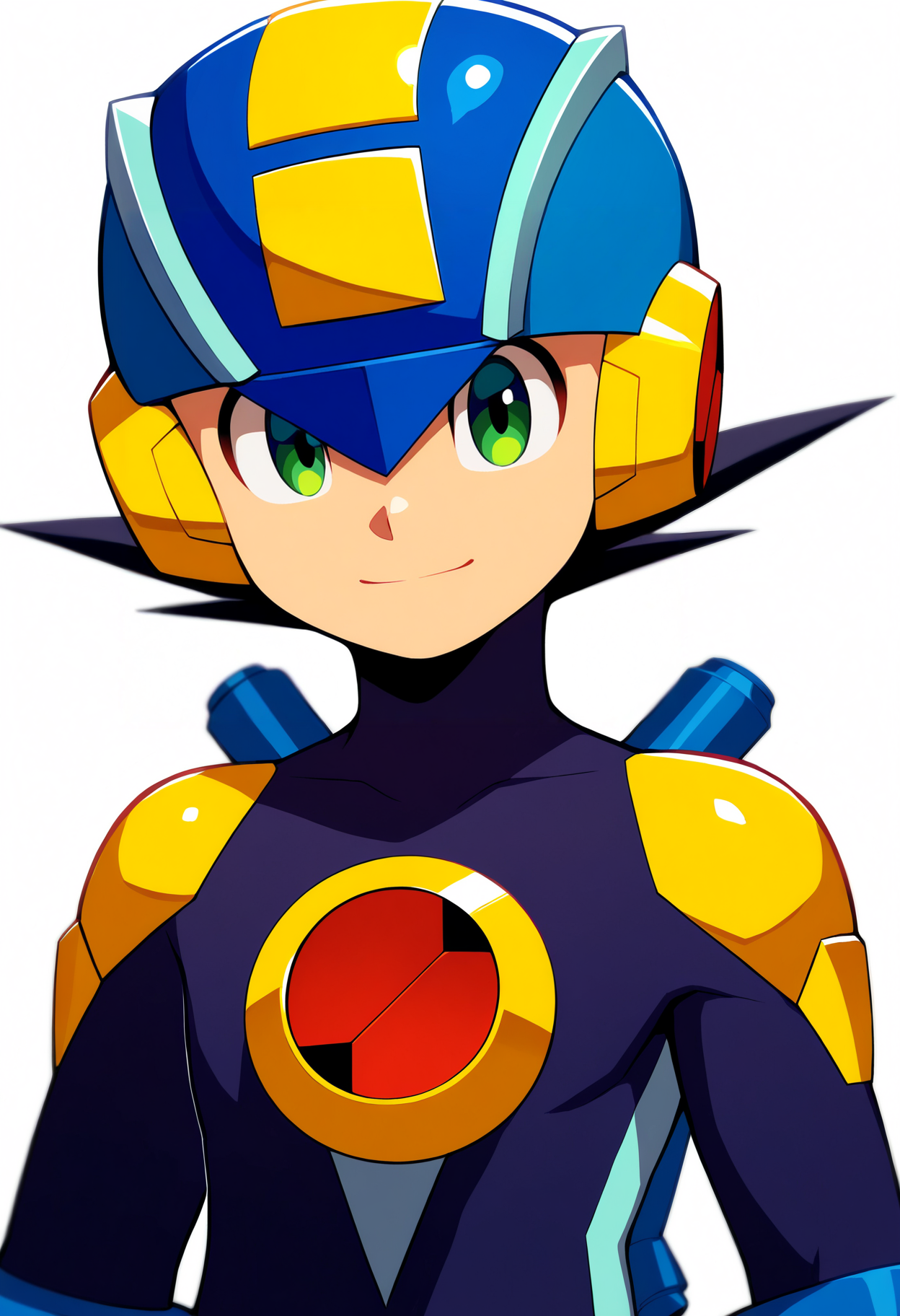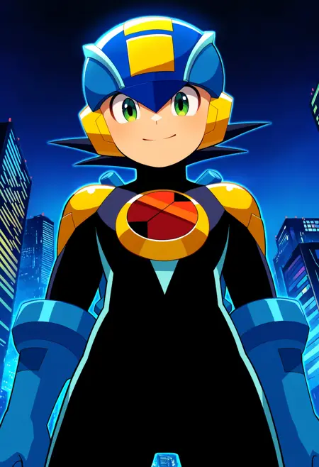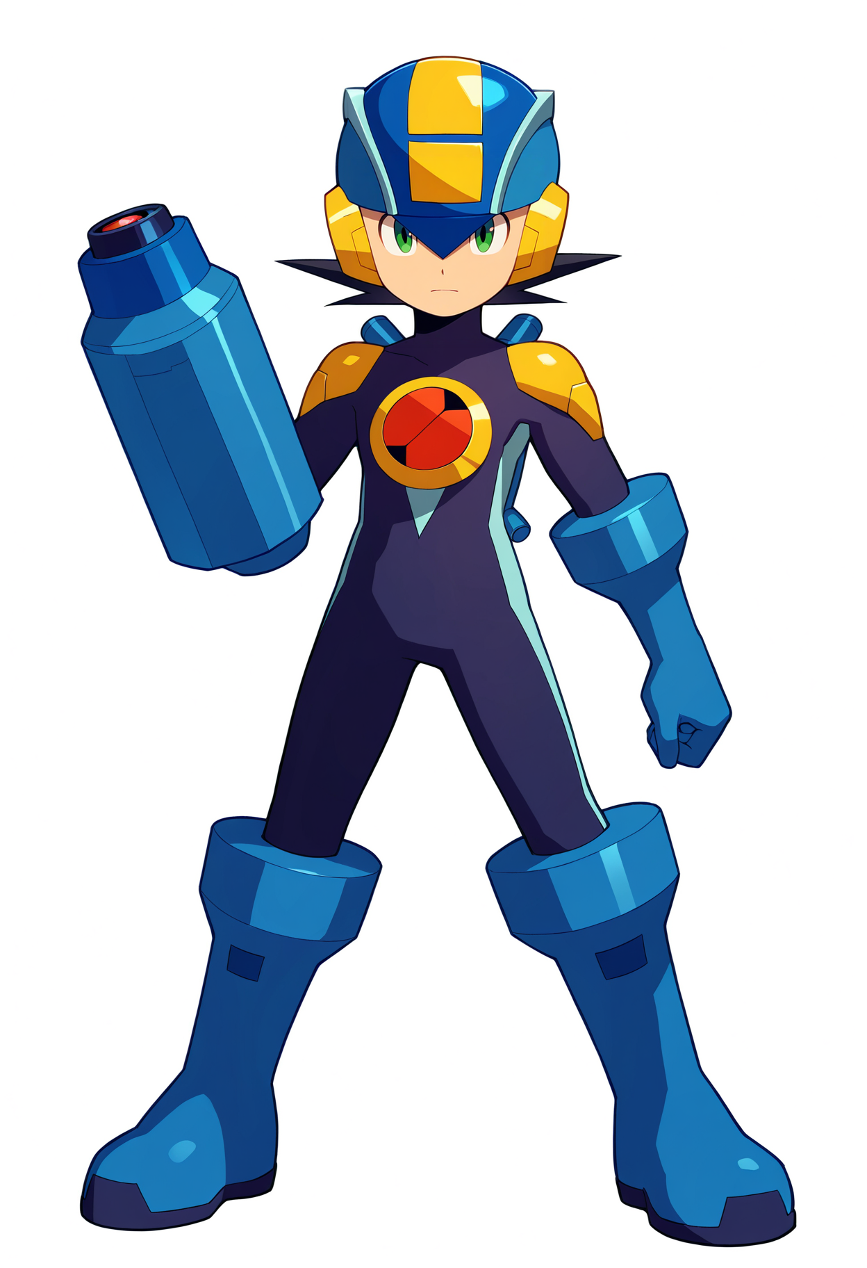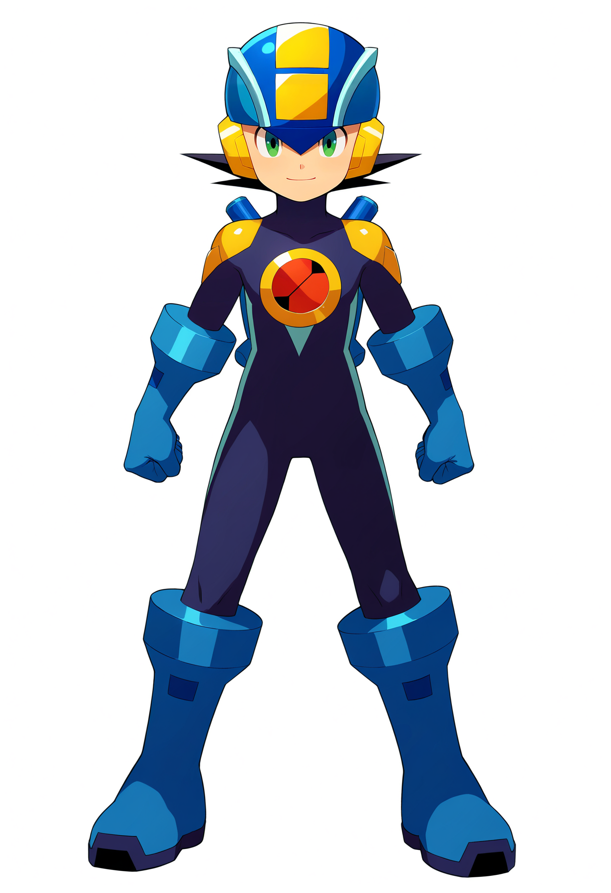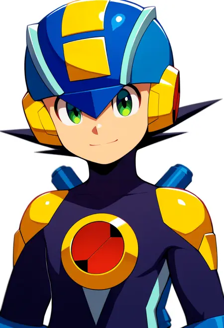 基础提示词:1boy, megaman, black hair, green eyes, helmet, bodysuit, gloves, boots