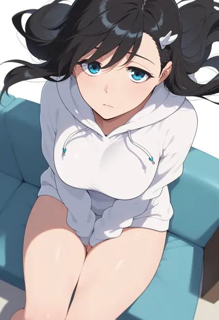 noel, 1girl, blue eyes, black hair, long hair, hair ornament