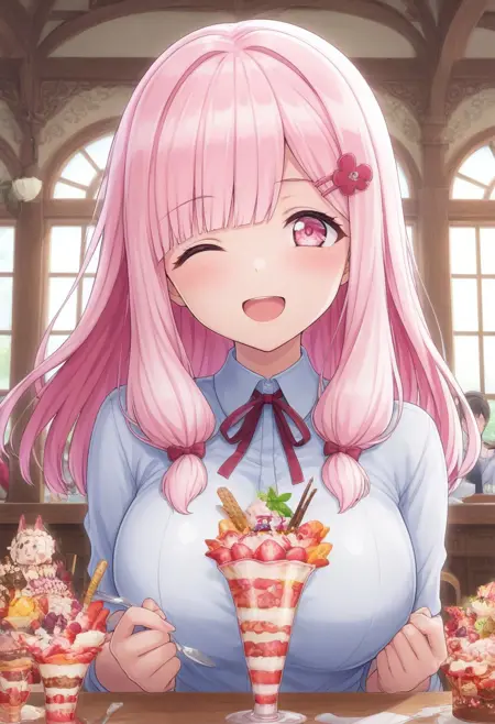 분홍색 헤어, 헤어클립, 분홍색 눈