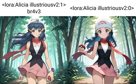 • 如果你使用 1girl 且不添加其他特征(例如发长、发色等),Alicia 应为主要焦点,但你也可以输入其他角色和元素,它同样有效。