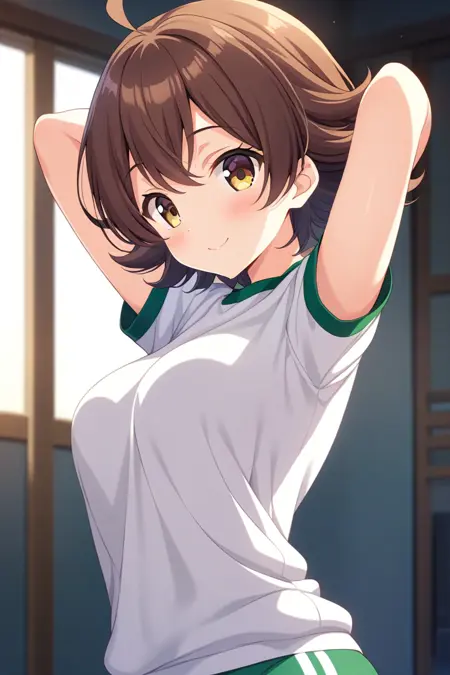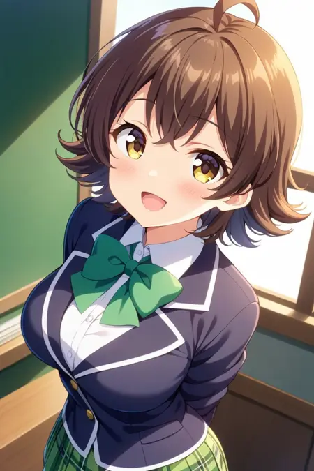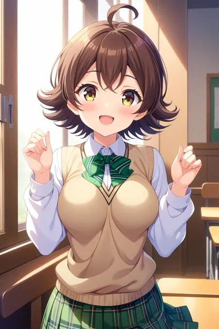 Trigger words: hiiragimakoto, brown hair, ahoge, short hair, flipped hair, yellow eyes, brown eyes