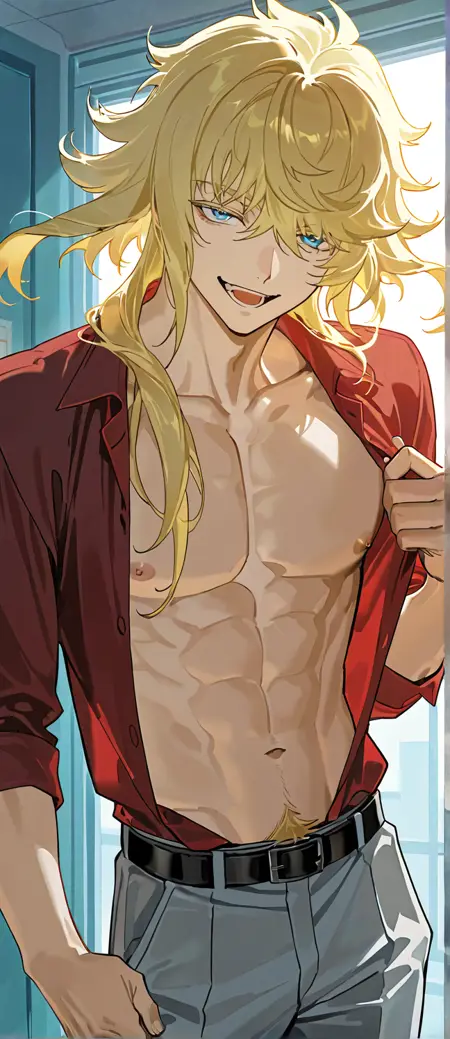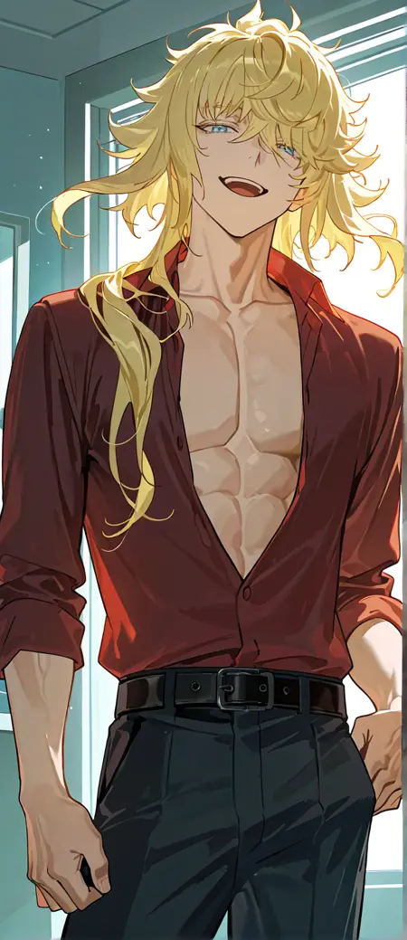 트리거 단어: 이치몬지 노리무네, 금발, 긴 머리, 한쪽 눈을 가리는 머리, 파란 눈