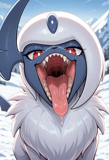 The activation tag is "vore_mawshot", and helper tags to go along with it are "solo, bodily fluids, saliva, teeth, tongue out, looking at viewer, saliva string, fangs, ...", among others.