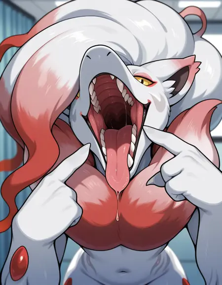 활성화 태그는 "vore_mawshot"이며, 이와 함께 사용할 수 있는 보조 태그로는 "solo, bodily fluids, saliva, teeth, tongue out, looking at viewer, saliva string, fangs, ..." 등이 있습니다.