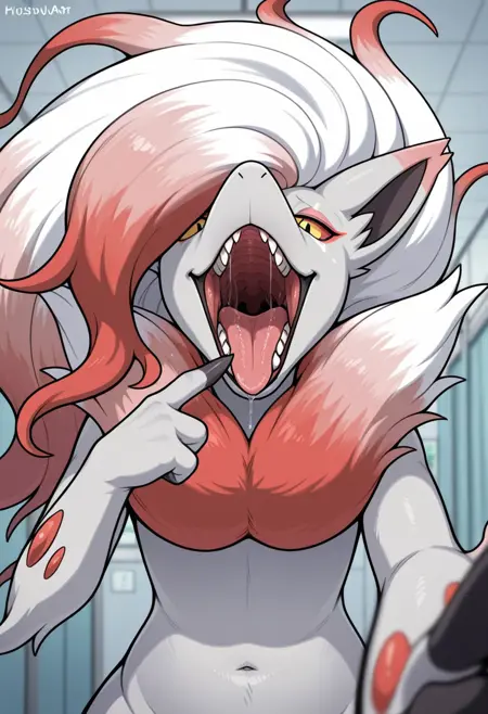 The activation tag is "vore_mawshot", and helper tags to go along with it are "solo, bodily fluids, saliva, teeth, tongue out, looking at viewer, saliva string, fangs, ...", among others.