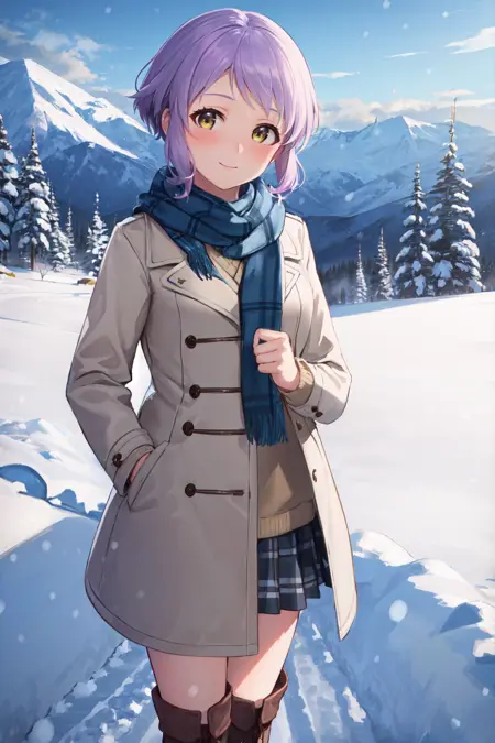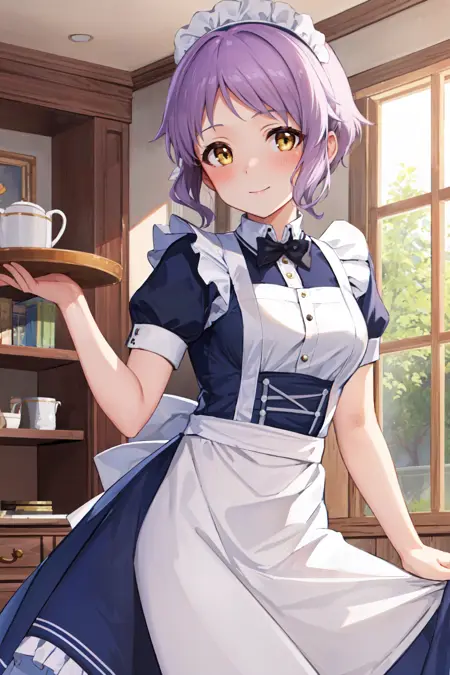 キャラクターのトリガー:mizuki makabe、パープルの髪、ショートヘア、イエローの目