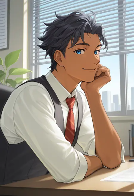 P4rt1t10, black_P4rt1t10_hair, blue eyes, male focus, (dark-skinned male:0.55),