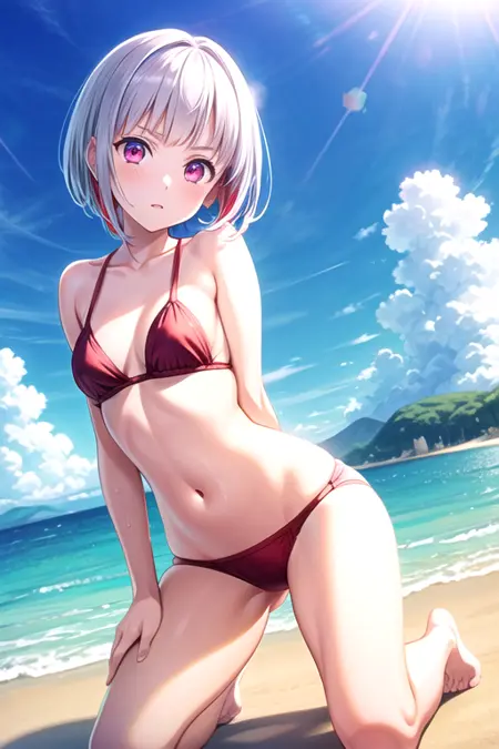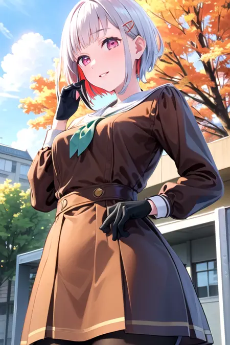 프롬프트: 1girl, solo, yugiri tsuzuri, pink eyes, white hair, multicolored hair, short hair,
