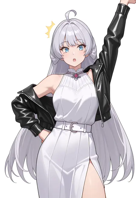 kurehacnn,1girl,bangs, blue eyes, ahoge, mole, bare shoulders, grey hair, very long hair,