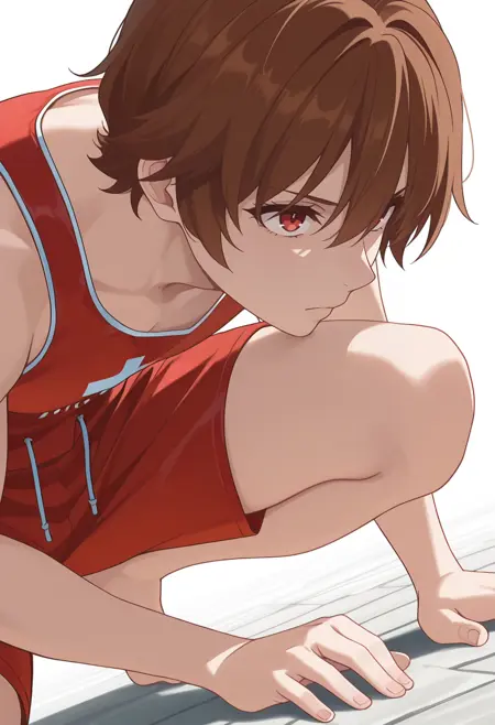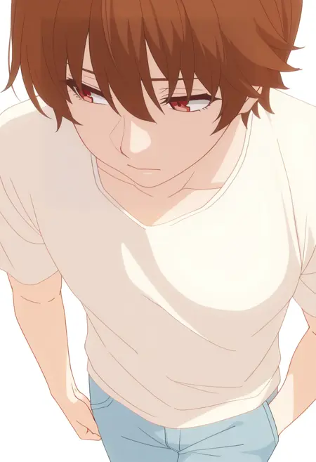 keyarucnn,1boy,brown hair, short hair, red eyes,