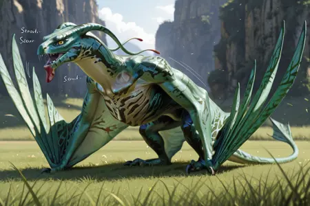 이것은 Illustrious 모델에서 생성된 제임스 카메론의 아바타에 등장하는 날아다니는 생물 이크란 / 반시입니다.