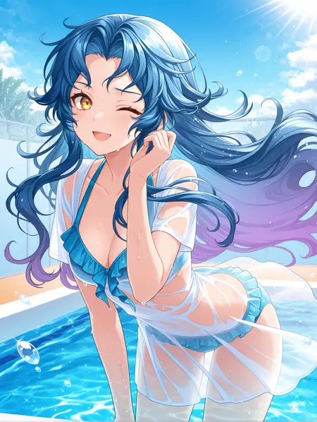poseidon ii, gradient hair, blue hair, purple hair, halo
