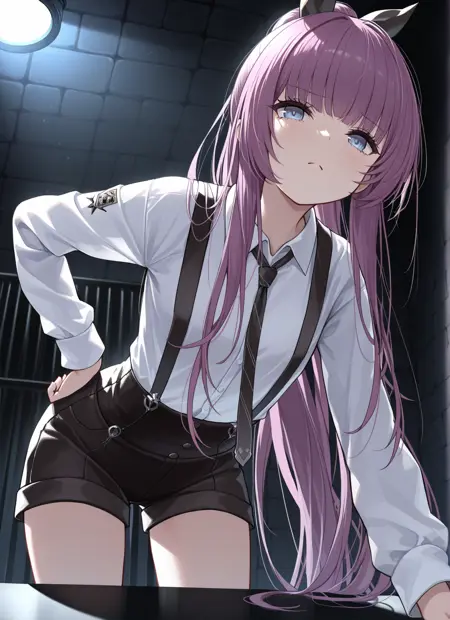受缚的巡洋舰(the_bound_cruiser):tashkent \(the bound cruiser\) \(azur lane\),ponytail,collared shirt,suspender shorts,necktie,