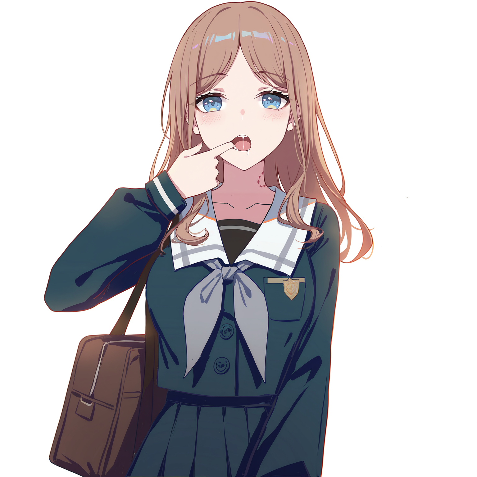 タグ:nagasaki soyo, brown hair, blue eyes, parted bangs, sidelocks