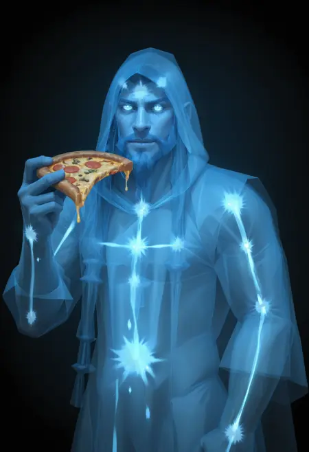 a1pf、ローブ、フード、透け、発光、長いひげ、1boy、青い肌、