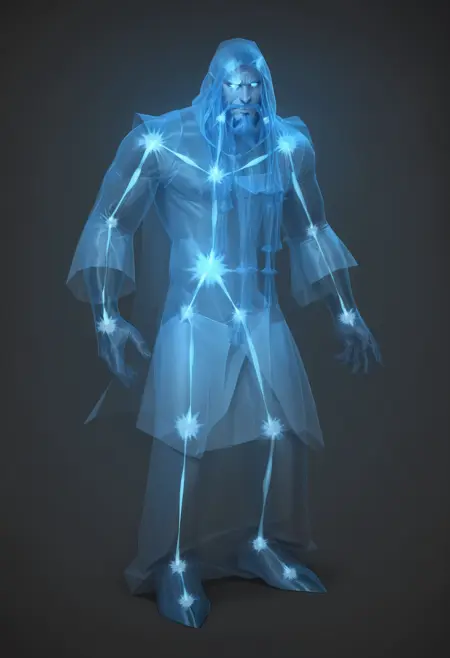 a1pf, 长袍, 帽兜, 透明, 发光, 长须, 1个男孩, 蓝色皮肤,