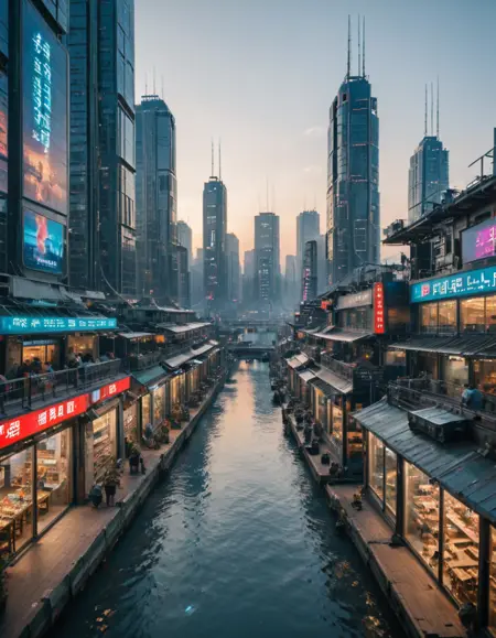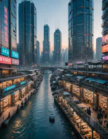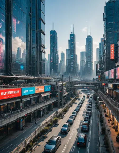 다운타운: 큰 거리, 상점, 높거나 낮은 건물, 너무 미래적이거나 사이버펑크적이지 않음. 낮은 안개.