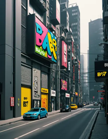 다운타운: 큰 거리, 상점, 높거나 낮은 건물, 너무 미래적이거나 사이버펑크적이지 않음. 낮은 안개.
