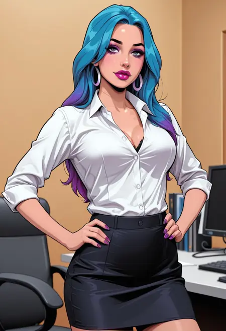 Fanny Price a canonical trans woman by cherrymousestreet with a bimbo aesthetic, multicolored hair and fake tits/breast implants