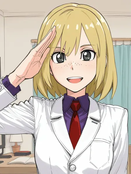 トリガー語: toshimarnie、ショートヘア、乱れた髪、白いジャケット、シャツ、ネクタイ、プリーツスカート