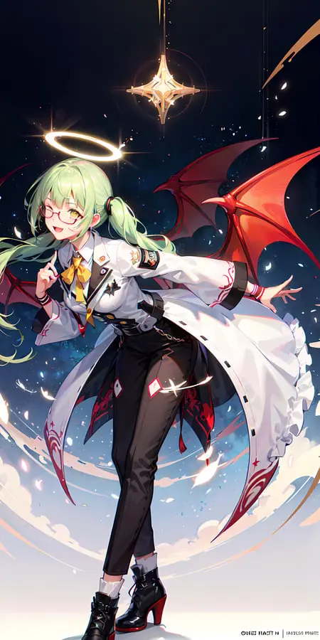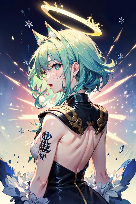 その結果、Nyan Mixは半現実的なスタイルで非常に色彩豊かでコントラストの高い、豊かなエフェクトをもった画像を生成できるようになりましたが、環境がたびたび抽象的になりすぎ(CFG Fixを使用しないと)、またデフォルトで非常に暗いのが特徴です("withContrastFix"バージョンを使用する場合)。