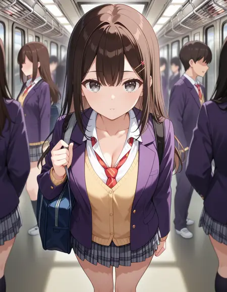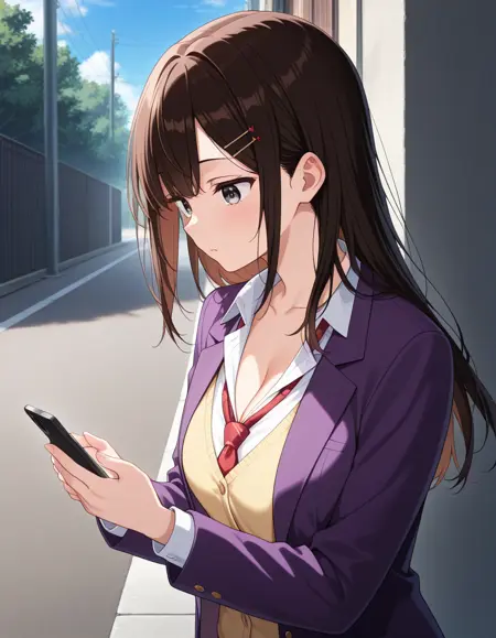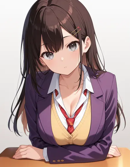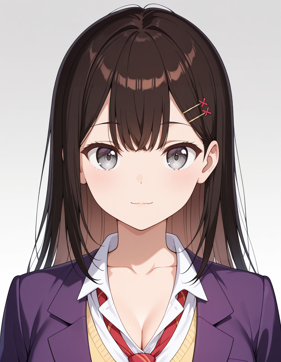 <lora:rion_enomoto-danjo_no_s1-v2-ixl-anime-soralz:1>, rion enomoto (danjo no),长发,黑发,棕发,多彩发色,发夹,灰眼睛