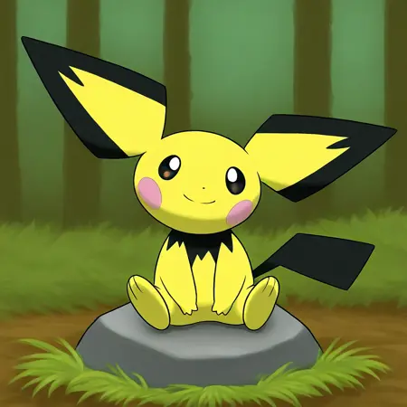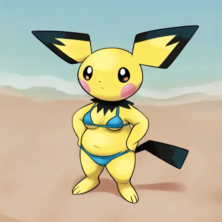 semi-anthro, pokemon (creature), rodent, yellow and black fur, white pupils, black sclera, black tail, pink cheeks, large ears,