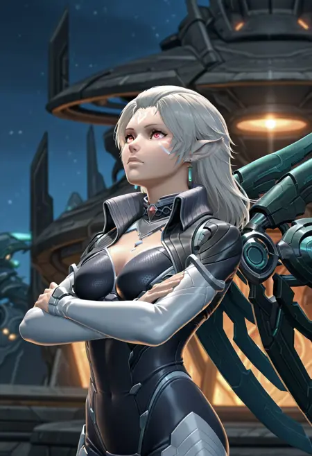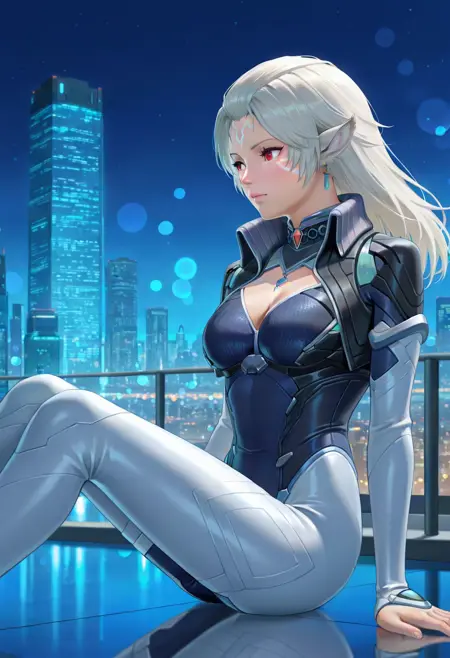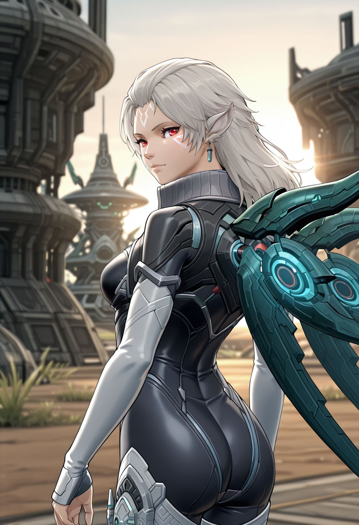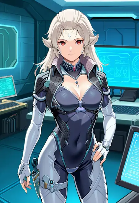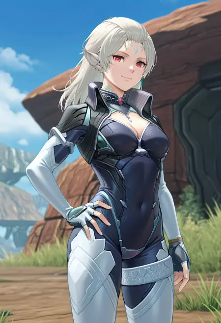 • 基本プロンプト: _neilnail_(xenoblade), 1girl, 長い髪, 白い髪, 赤い目, 動物の耳, 中程度の胸, 顔の模様, 耳飾り, ジュエリー, ボディスーツ, 胸元の開き