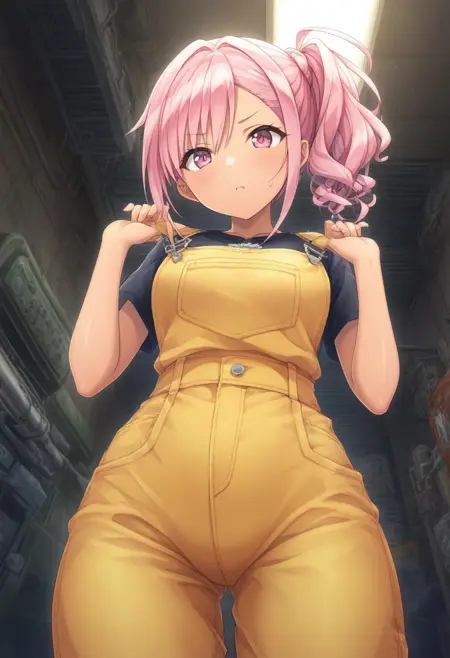 사이드 펀테일, 분홍색 머리, 분홍색 눈, 탄 피부