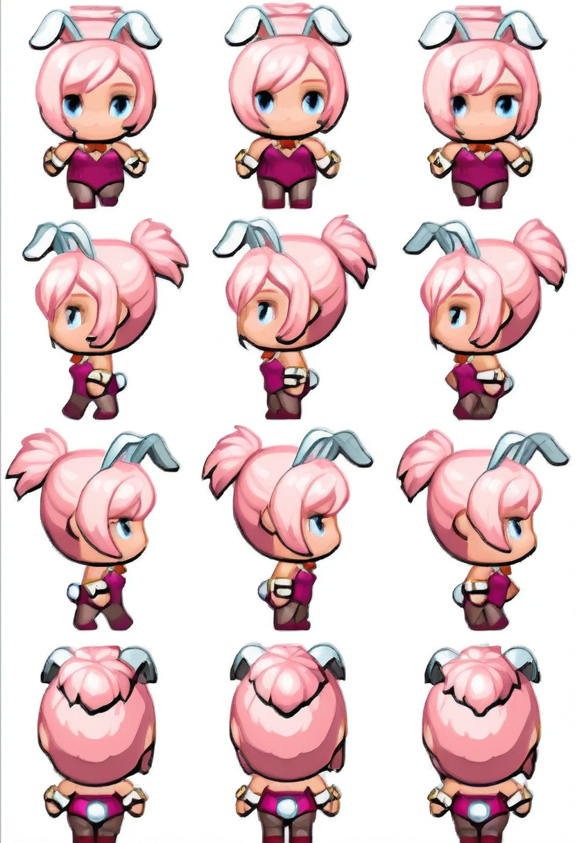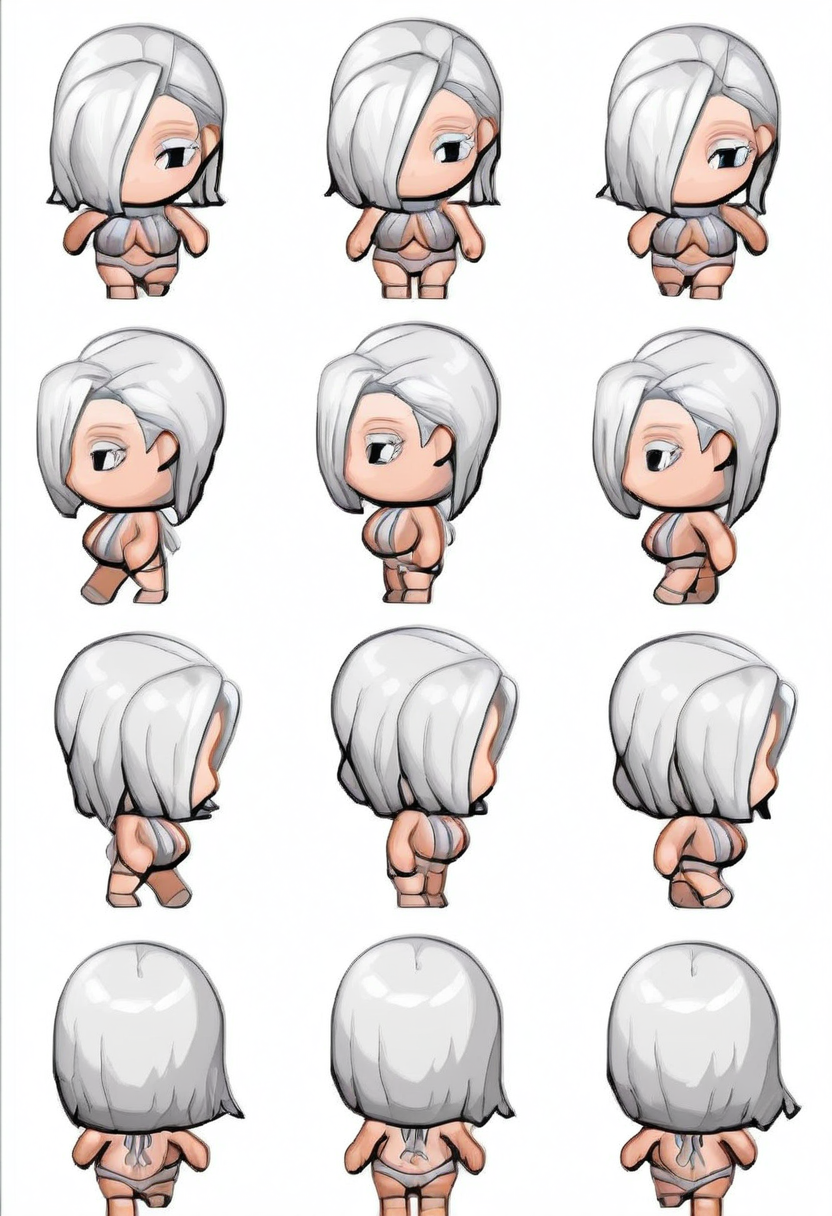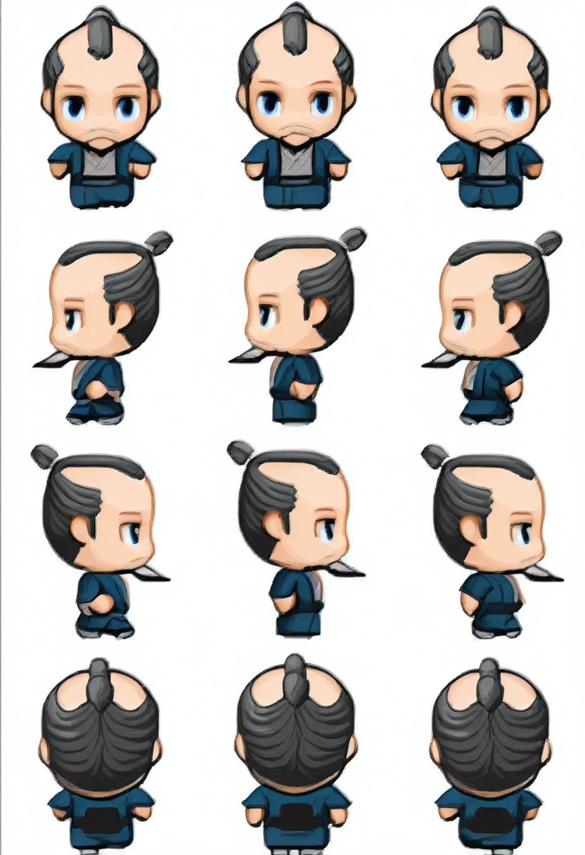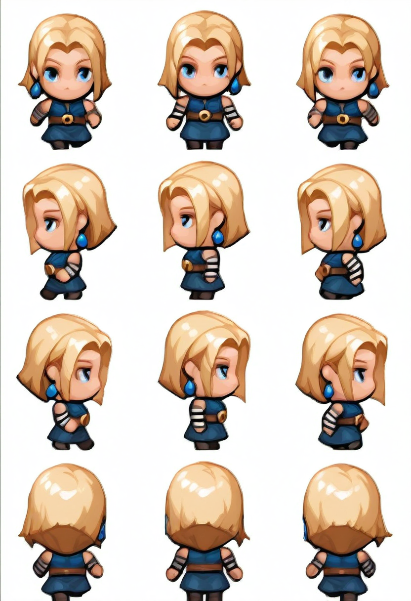 RPGメーカーのような歩行アニメーションを生成するLoRAです。キャラクターを作成するには、次のプロンプト構造を使用してください:「chibi、複数のビュー、{あなたのキャラクターの説明}、シンプルな背景、白い背景」。編集なしで、リスケールと白い背景を透過に置き換えた結果を示す動画デモを含めています。