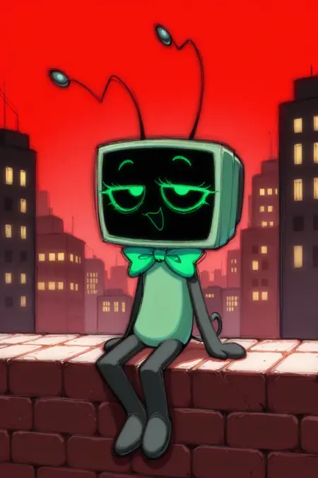 유용한 키워드: 안트로, 스크린, TV 머리, 화면 얼굴, 로봇, 나비넥타이, 떠 있는 물체, 물건 들고 있음, 마이크,