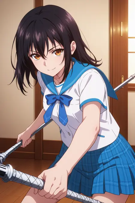 aayukina, 棕色眼睛, 黑色头发, 校服, 蓝色水手领, 蓝色蝴蝶结, 白色衬衫, 短袖, 蓝色裙子, 百褶裙, 格子裙, 动漫上色,