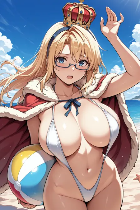 水着には、「冠、白い水着、スリングショット水着、ファーtrimmedなマント、赤いマント」を追加してください。