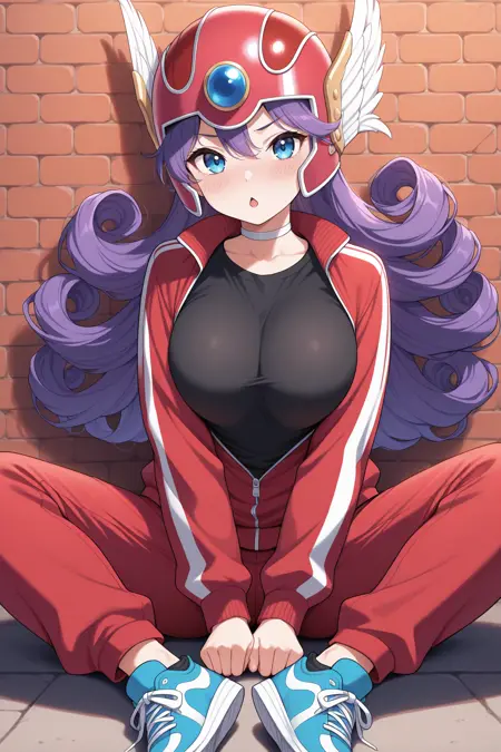 Trigger word is "d3sold" and "purple hair, curly hair, long hair, blue eyes" is required.