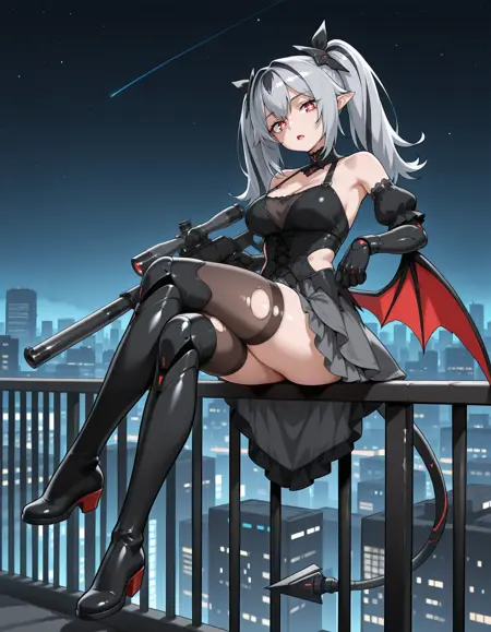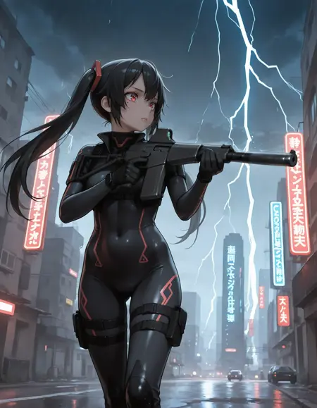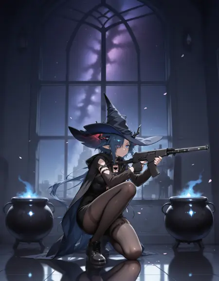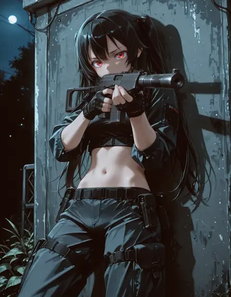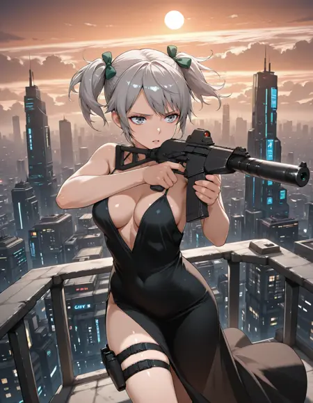 1girl, as_val_x_vss, assault rifle, suppressor, holding rifle, aiming,