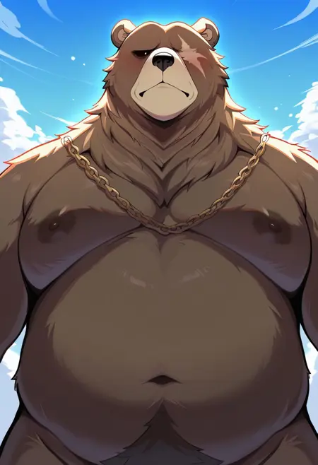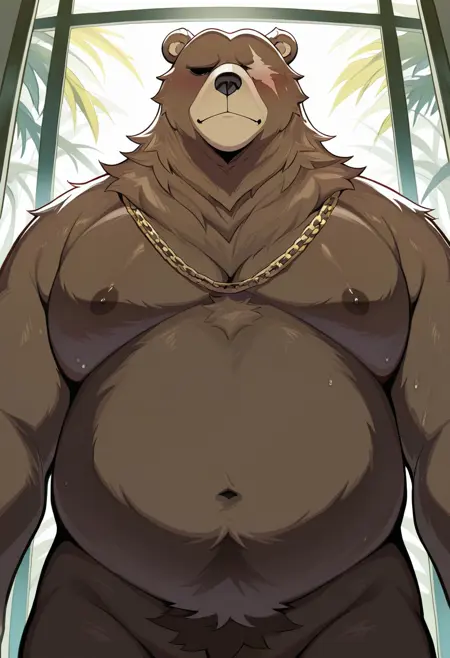 Bear boy,B3n b1gg3r,brown fur,black eye,one scarred eye
