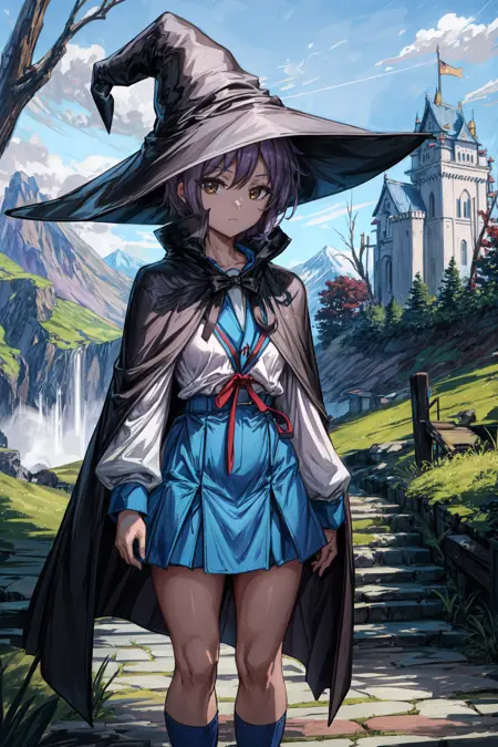 마녀: 마녀 모자, 마녀 망토, 여름 복장, 무릎높이 양말