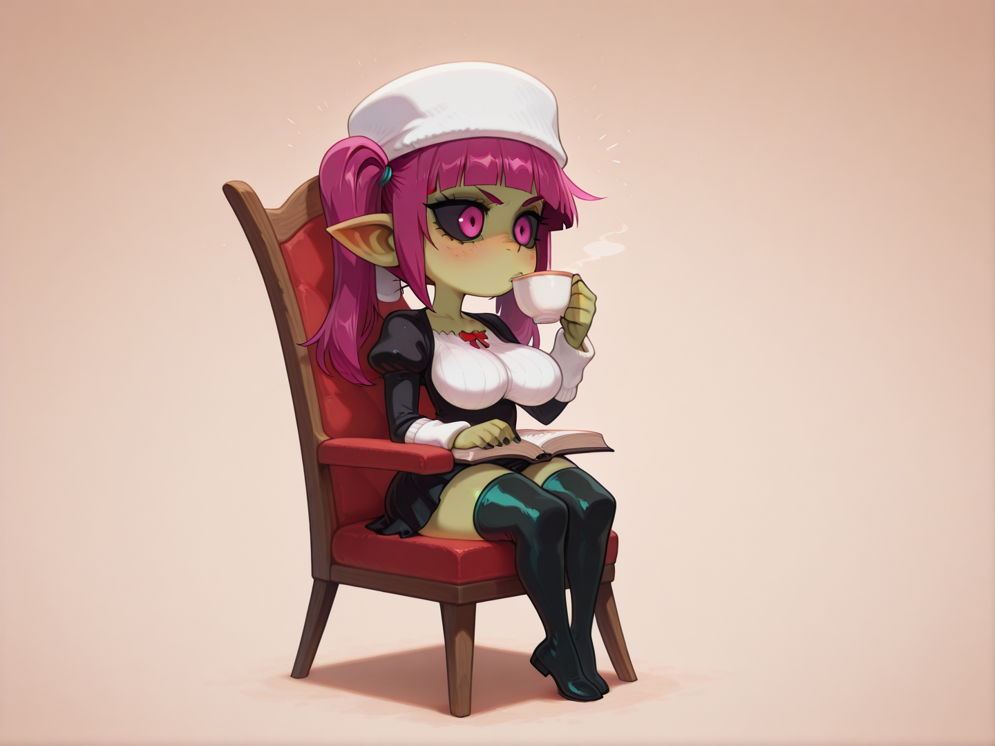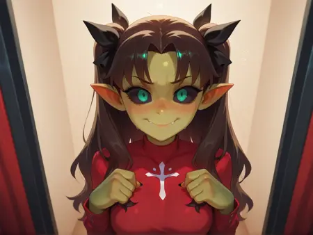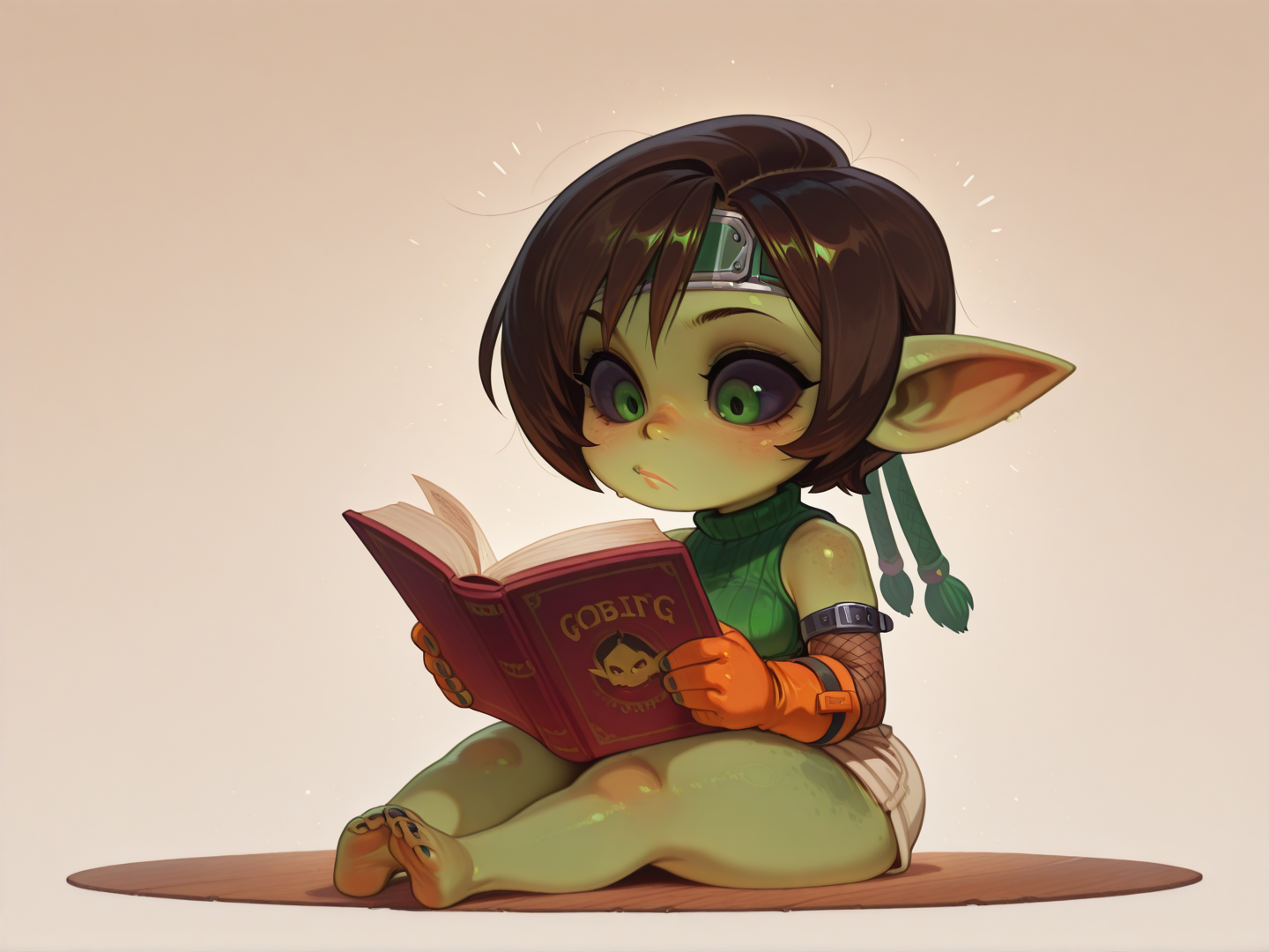 'Shortstack'은 LoRA에 완전히 내장되어 있지 않으므로, 더 낮고 뚱뚱한 고블린을 원하신다면 이 태그도 추가하세요! 원치 않는 남성 고블린이 나오면 'male goblin'을 부정적 태그에 넣으세요. 하지만 이는 소녀의 고블린 특성을 약간 희석시킬 수 있습니다.