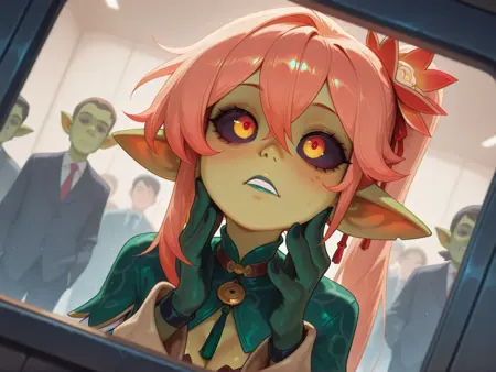 Recommended Tags: goblin girl, green skin, black sclera