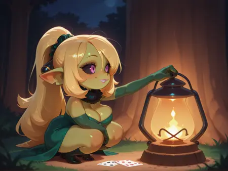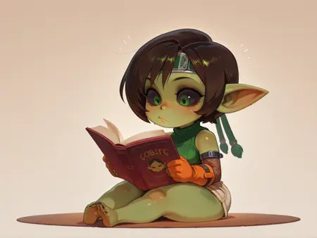 'Shortstack' isn't entirely baked in to the LoRA, so if you like more squat gobbos be sure to add it as well! If you're getting random male goblins you don't want you can stick 'male goblin' in the negative tags. This does seem to slightly detract from the girl's goblinness, though.