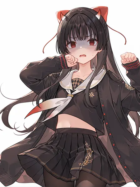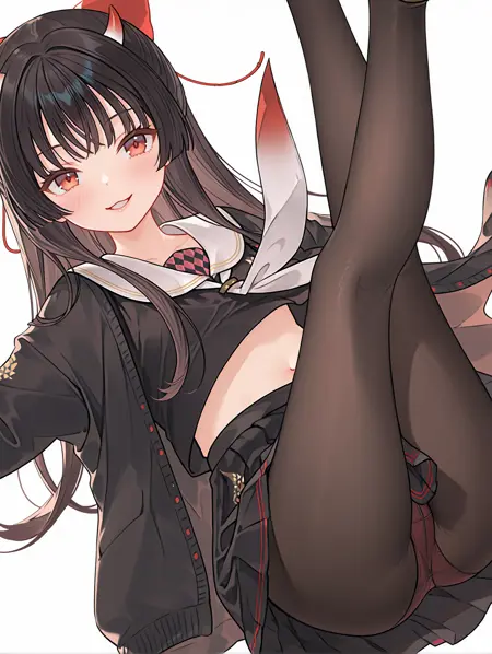 복장: s_clothes, black cardigan, black serafuku, black_pantyhose, black_loafers