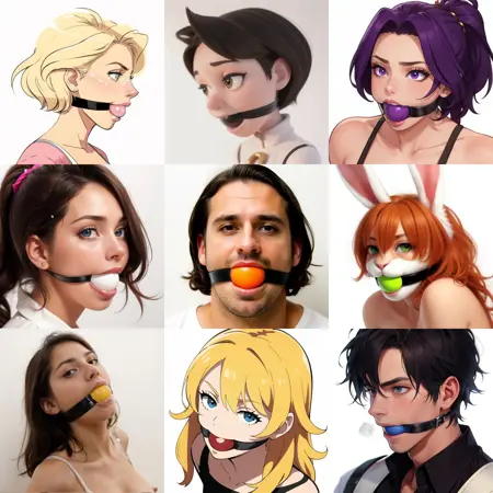 색상을 프롬프트로 지정할 수 있습니다: bl4ckballgag, r3dballgag, multiballgag(다른 모든 색상)