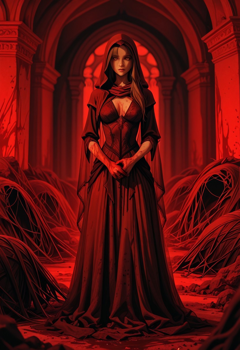 v1 Queen Prompt: 1girl,red dress,black bra,long hair,brown hair,yellow eyes,ponytail