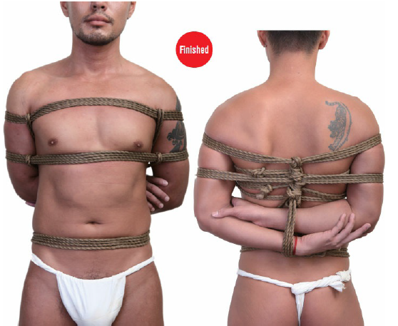 这是一个用于Ushiro takate kote的测试LoRa——这是大多数绳缚形式的基础形态,能够将上身/胸部和手臂在身后以“U”形束缚(当为ushiro时)。