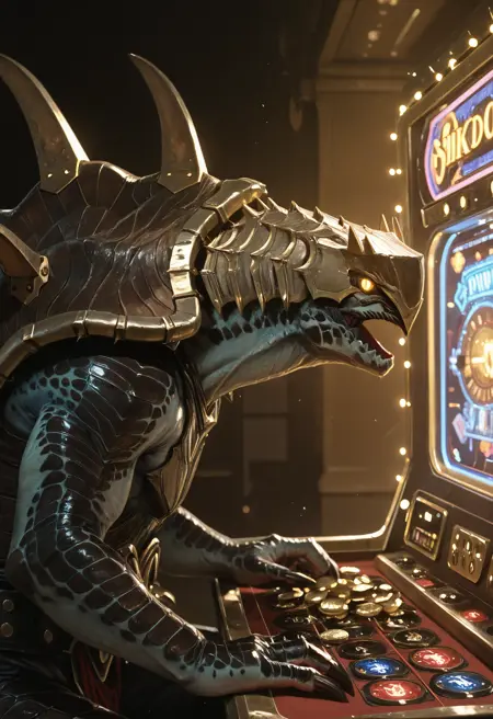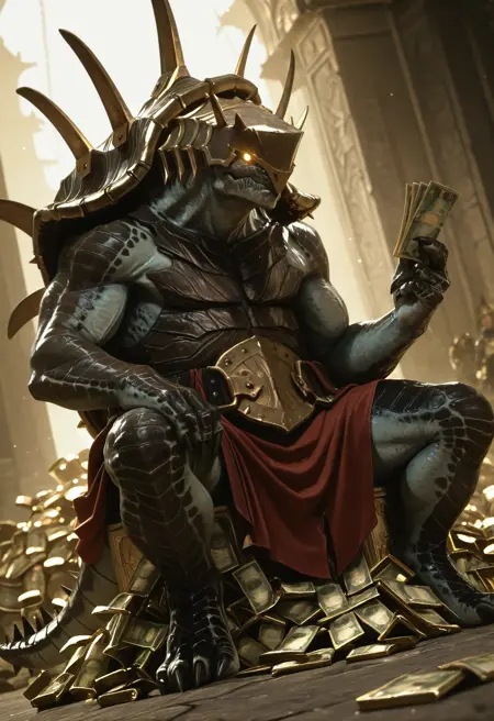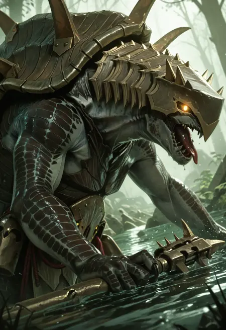kr1sk_raid_shadow_legends, alligator snapping turtle, scalie, reptile, snapping turtle, spikes, solo, 1boy, anthro, no humans, claws, male, tail, glowing yellow eyes, glowing eyes, digitigrade, armor, helmet