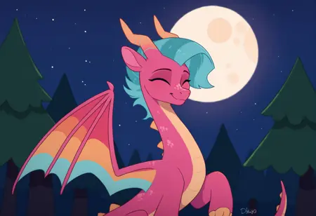 ,Blaize Skysong,dragon,pink body,multi-colored wings with iridescent pink,orange and blue colors,pink wings have a scaly pattern,light blue hair,pink horns,light skin on the paws and tail,blue eyes,blue claws