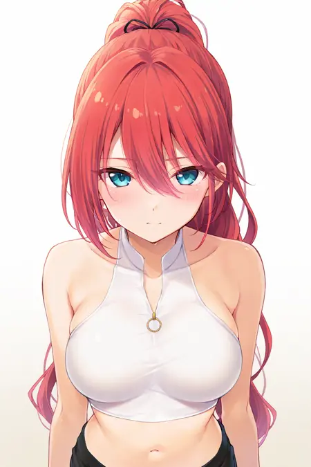 KizukiRei, 녹색 눈, 빨간 머리, 긴 머리, 높은 팔표, 눈 사이의 머리, 머리 리본, 검은 리본,