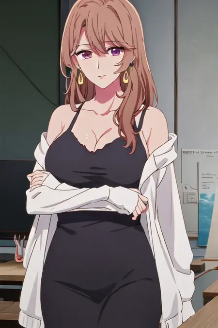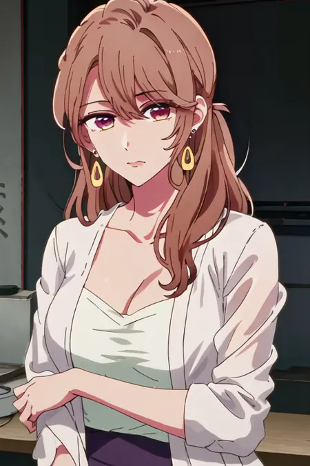 트리거 단어는 saitou_miyako_oshinoko이며, 권장 태그는 best quality, masterpiece, highres, solo, {saitou_miyako_oshinoko:1.15}, brown_hair, bangs, long_hair, earrings, jewelry, hair_between_eyes, closed_mouth, purple_eyes입니다.