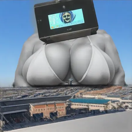 Giga Giantess, Object head, recolored skin, City, Rampage, Big Breasts, Nudity, NSFW