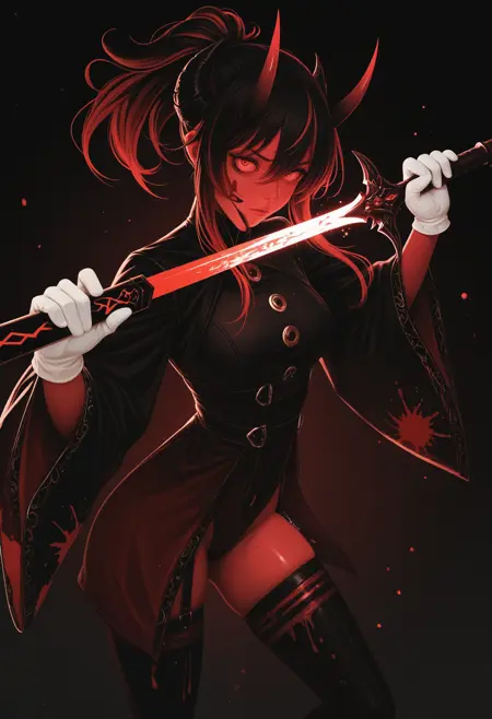 艺术风格以红、黑、白为主色调,适用于图像、提示和概念的改编,非常适合漫画、动漫和插画风格。风景或素描建议使用较低强度(0.4-0.8)。角色建议使用较高强度(0.6-1.0)。如果希望某个元素呈现特殊颜色,只需描述为红色、白色或黑色即可。